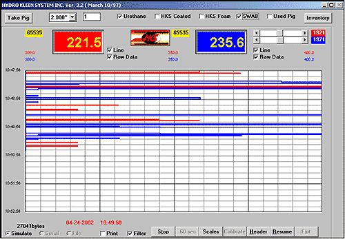 The loading of each pig is carefully recorded and its passage through the furnace is monitored by a computer in the Pumping Unit Control Room. Experienced interpretation of these recordings provides each technician with the facility to study and record pressure and flow fluctuations returned by each pig as it decokes the tubes. Technicians can control the speed, direction, pressure and volume governing a pig's progress through the tubes. The Pumping Unit is designed with reverse flow for pigs to be bi-directional.